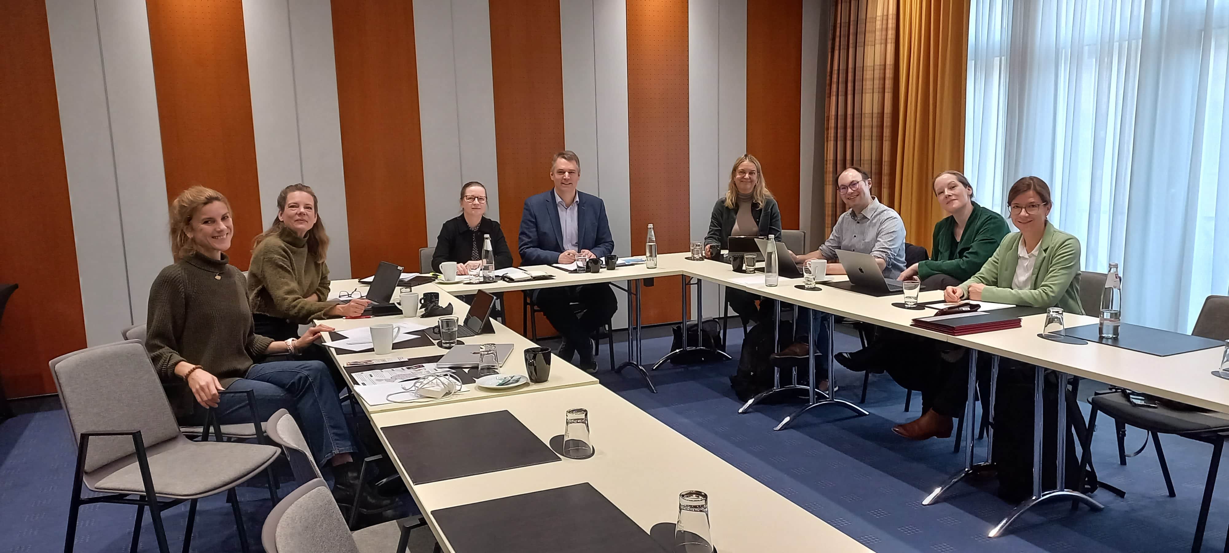 Astrid Dröse, Tabea Becker, Andrea Sieber, Torsten Mergen, Regina Strobel-Koop, Stefan Hartmann, Lea Braun und Sabine Schmitt-Bachmann (von links nach rechts) bei der konstituierenden Vorstandssitzung des Deutschen Germanistenverbandes